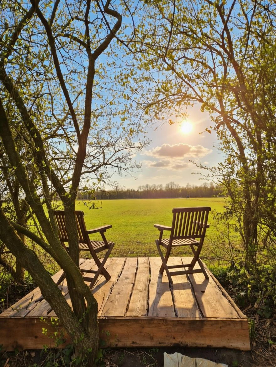 Sie können in Ihrem eigenen Zelt an einem privaten, von Büschen umgebenen Platz übernachten, mit Blick auf das Rotkleefeld und den Waldrand des Naturschutzgebiets Schoonloo. Diese Plätze verfügen über einen kleinen Steg am Erdwall mit einer privaten Terrasse, von der aus Sie – wahrlich – einen der schönsten Sonnenuntergänge erleben können.
